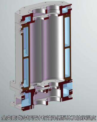 全夾套式冷卻設(shè)計,全機(jī)體冷卻水循環(huán),可有效降低泵體溫度。