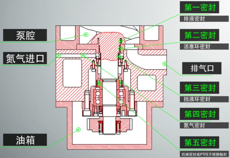 第四氮氣密封:利用氮氣的壓力阻止泵腔氣體或液體向下流動;